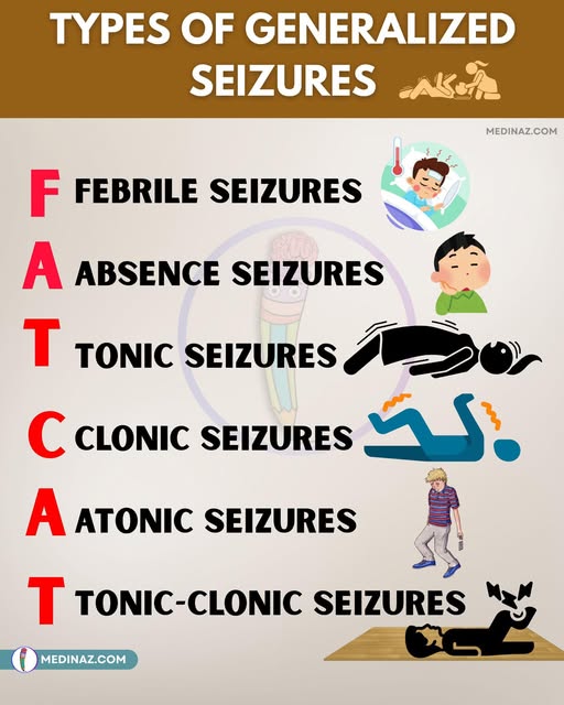 • Generalized Seizures: These involve both sides of the brain from the onset and usually result in a loss of consciousness. They are further divided into specific subtypes based on physical symptoms, but for simple understanding it affect almost all part of the body at once. The two most common types are given as examples below